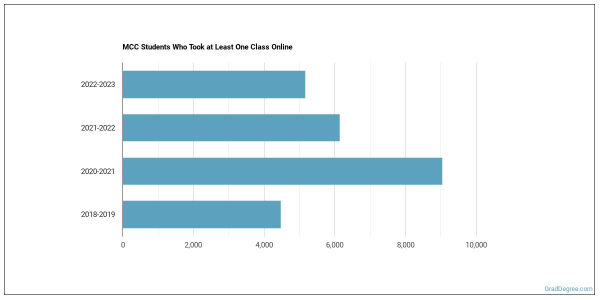 The following chart shows how the online learning population at MCC has changed over the last few years.