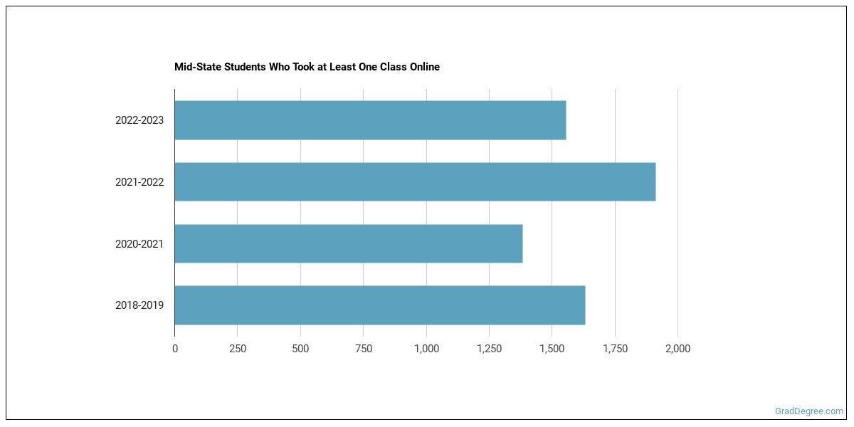 The following chart shows how the online learning population at Mid-State has changed over the last few years.