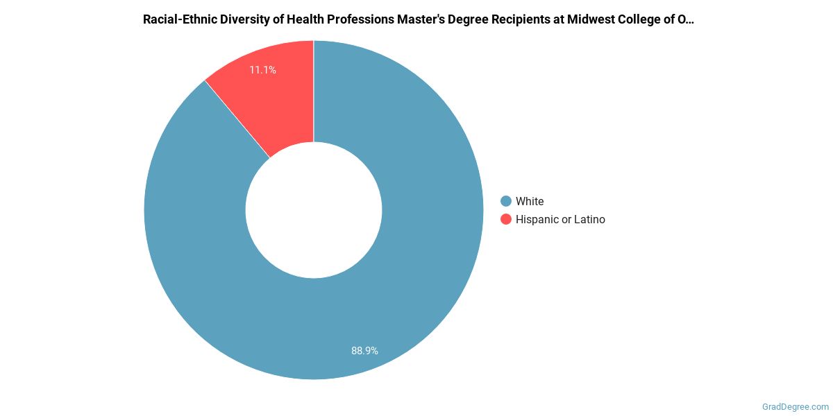 Of the students who received a health professions master's degree from MCOM - Racine, 89% were white. This is above average for this degree on the natiowide level.