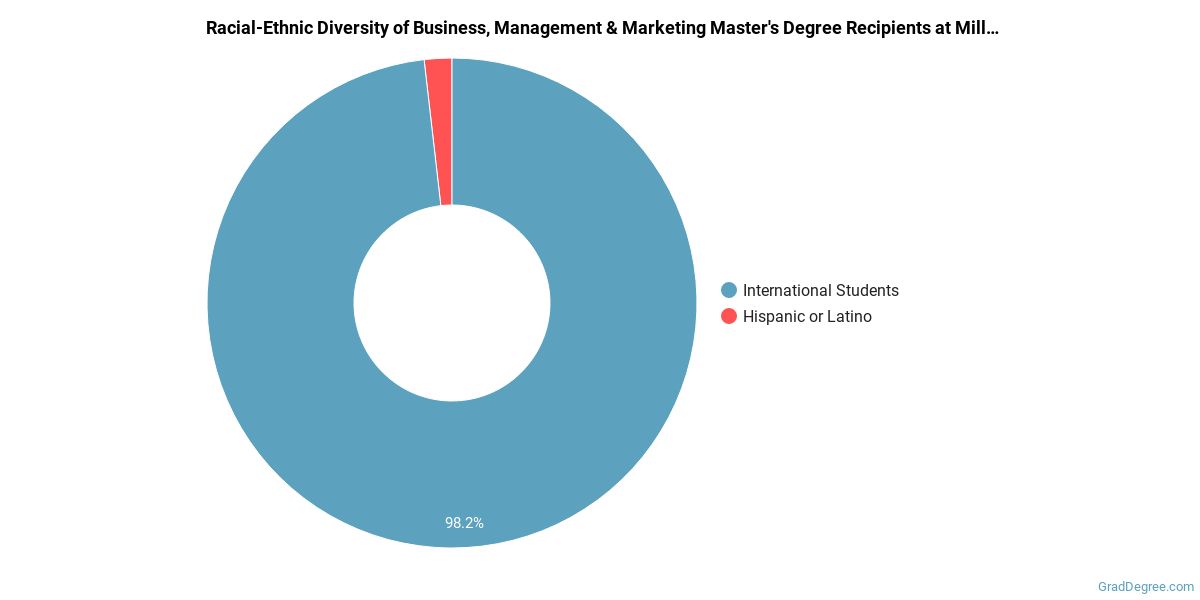 The following table and chart show the race/ethnicity for students who recently graduated from Millennia Atlantic University with a master's in business, management and marketing.