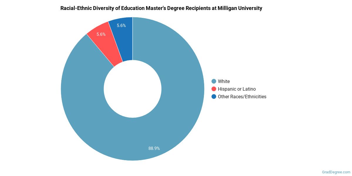 Of the students who received a education master's degree from Milligan, 89% were white. This is above average for this degree on the natiowide level.