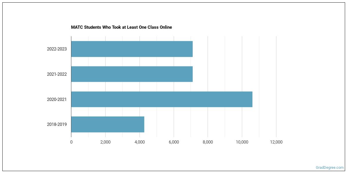 The following chart shows how the online learning population at MATC has changed over the last few years.
