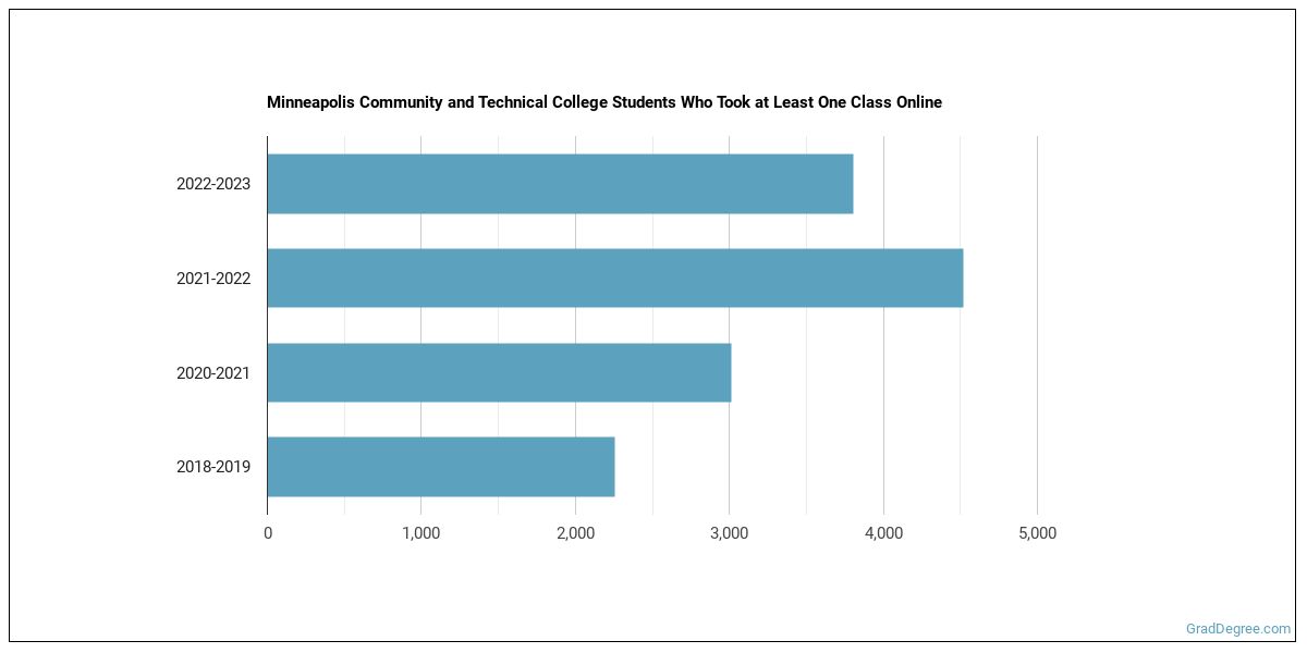 The following chart shows how the online learning population at Minneapolis Community and Technical College has changed over the last few years.