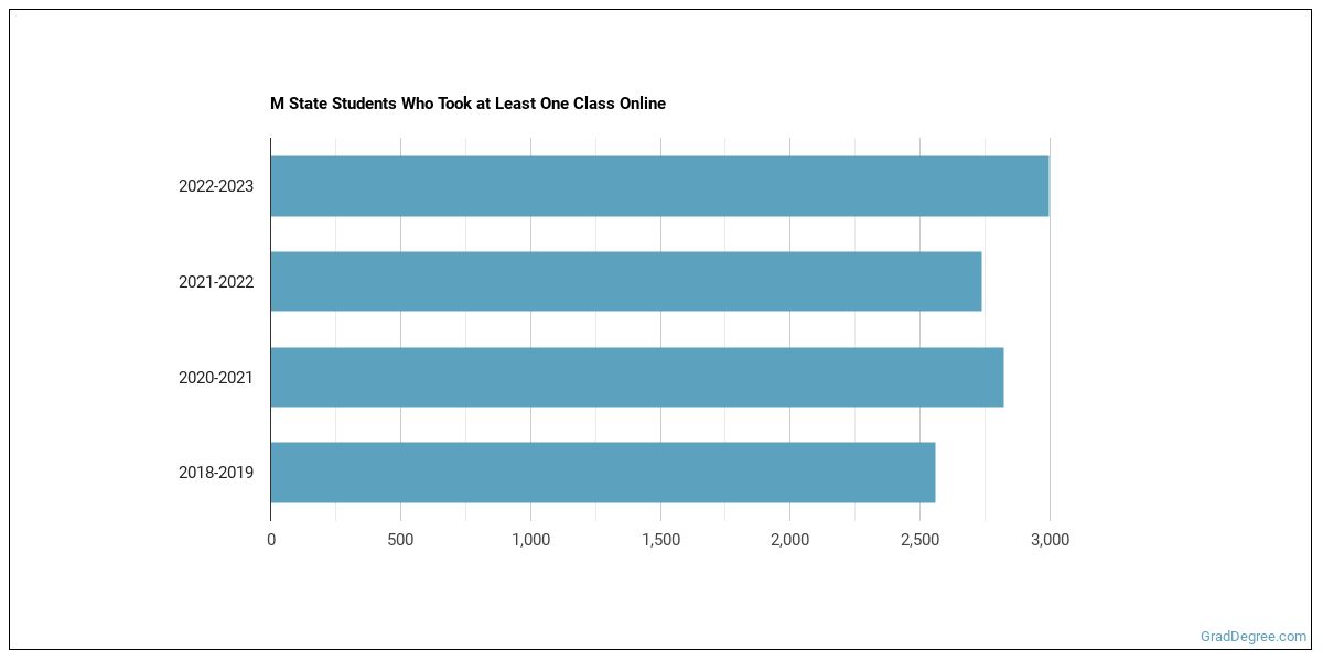 The following chart shows how the online learning population at M State has changed over the last few years.
