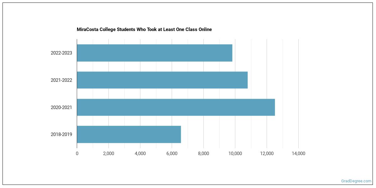 The following chart shows how the online learning population at MiraCosta College has changed over the last few years.