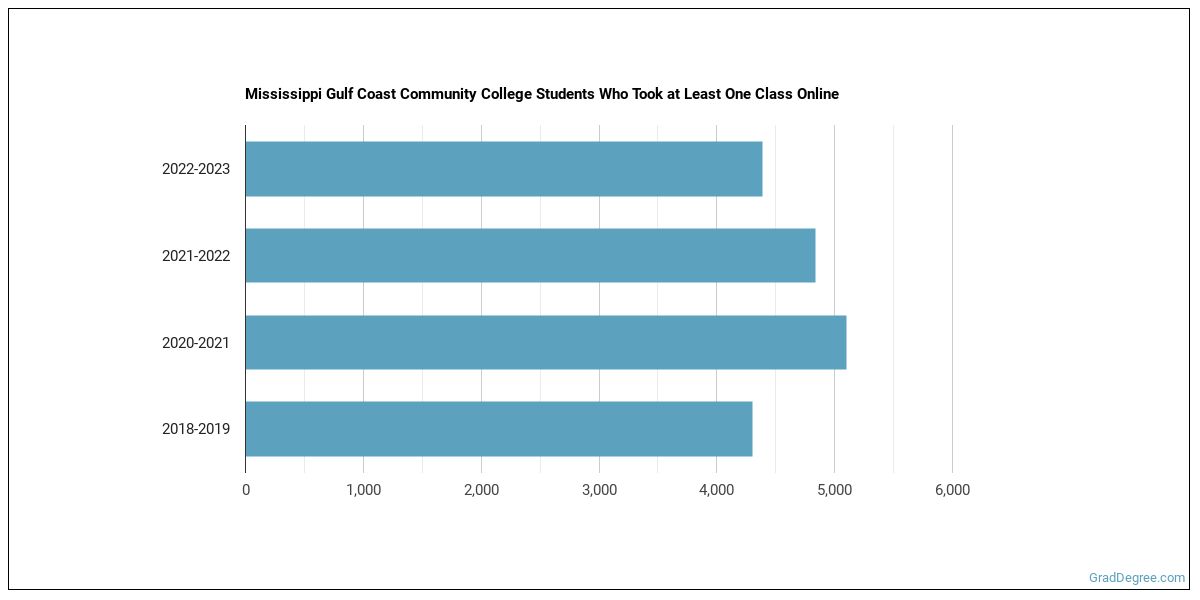 The following chart shows how the online learning population at Mississippi Gulf Coast Community College has changed over the last few years.
