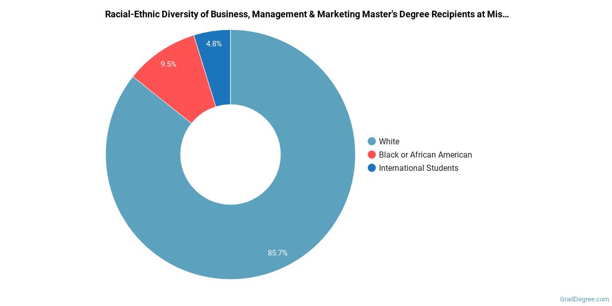 Of the students who received a business, management and marketing master's degree from Missouri Southern, 86% were white. This is above average for this degree on the natiowide level.