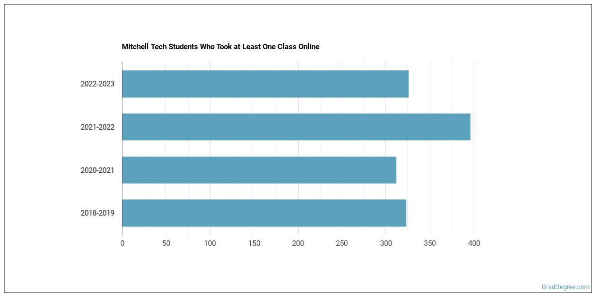 The following chart shows how the online learning population at Mitchell Tech has changed over the last few years.