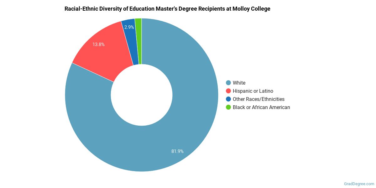 Of the students who received a education master's degree from Molloy, 82% were white. This is above average for this degree on the natiowide level.