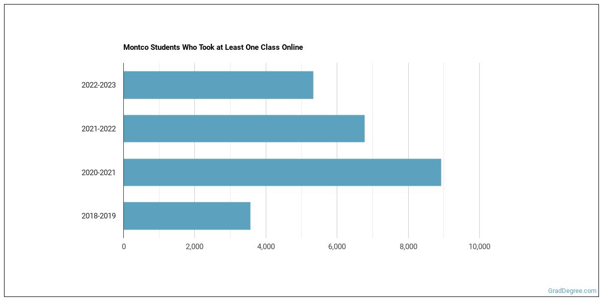 The following chart shows how the online learning population at Montco has changed over the last few years.