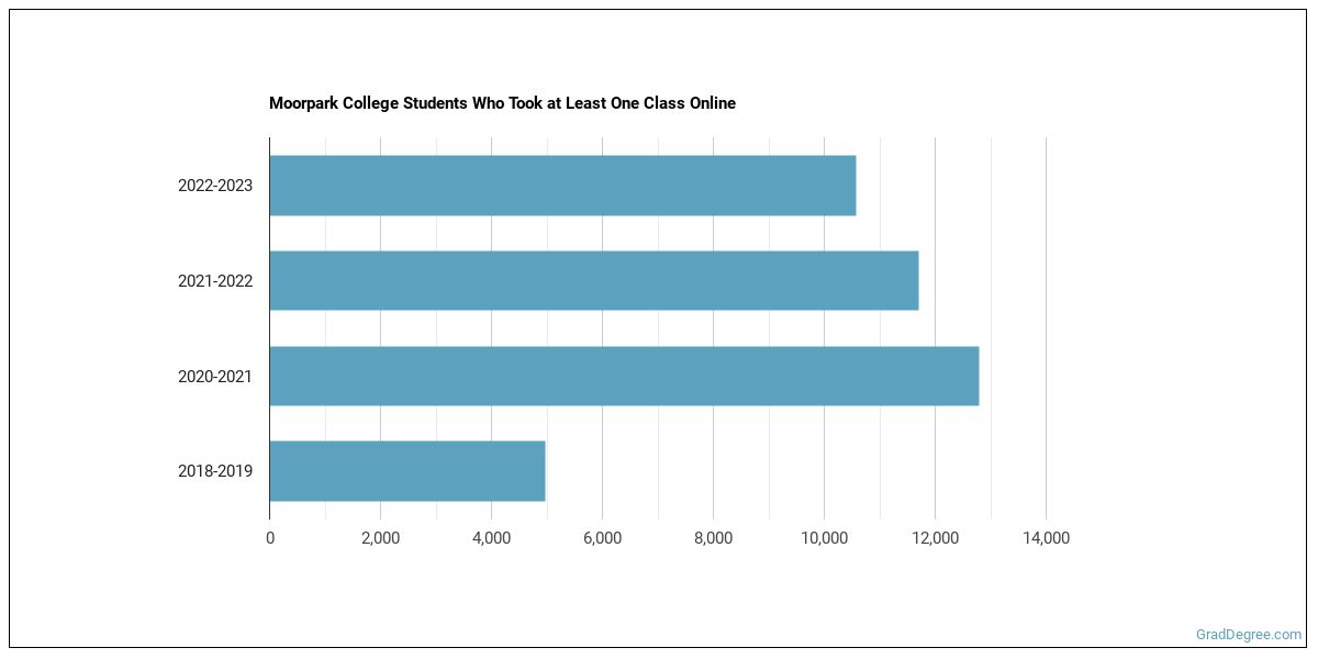 The following chart shows how the online learning population at Moorpark College has changed over the last few years.