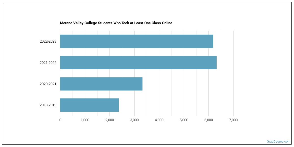 The following chart shows how the online learning population at Moreno Valley College has changed over the last few years.
