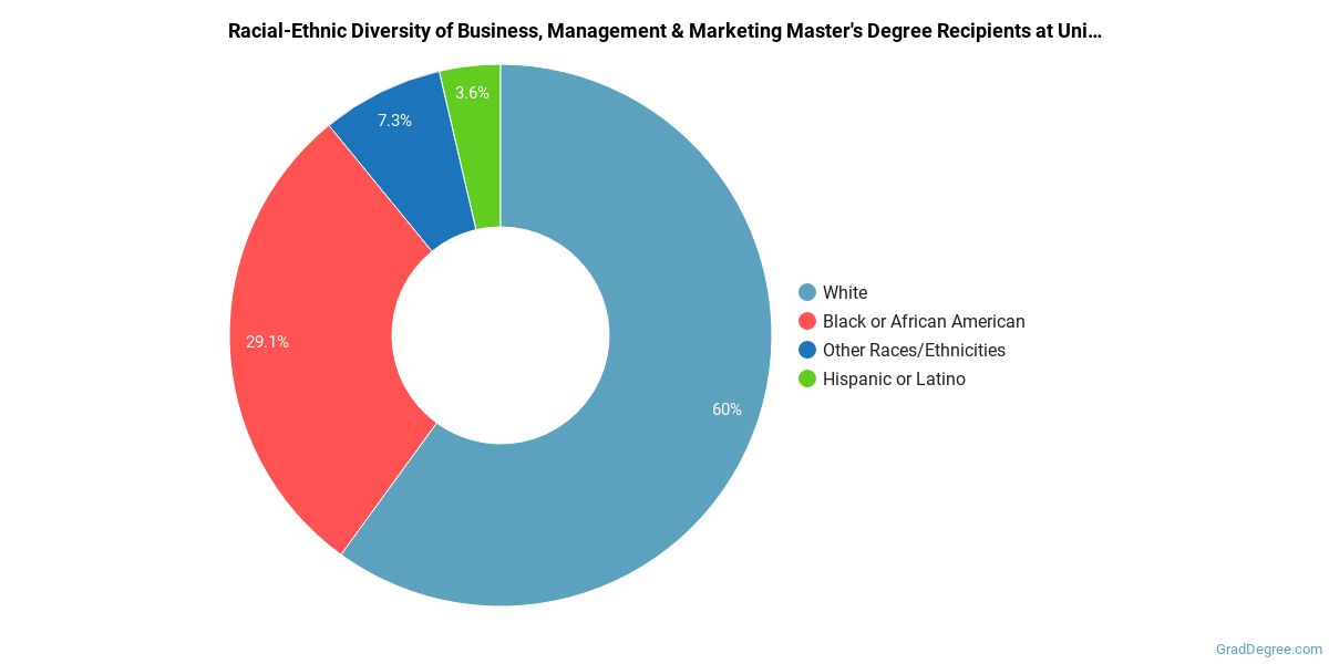 Of the students who received a business, management and marketing master's degree from UMO, 60% were white. This is above average for this degree on the natiowide level. In the business, management and marketing master's program at this school, racial-ethnic minorities make up 40% of degree recipients. That is 8% better than the national average.*