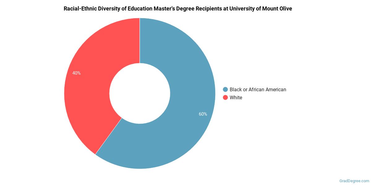 The following table and chart show the race/ethnicity for students who recently graduated from University of Mount Olive with a master's in education.