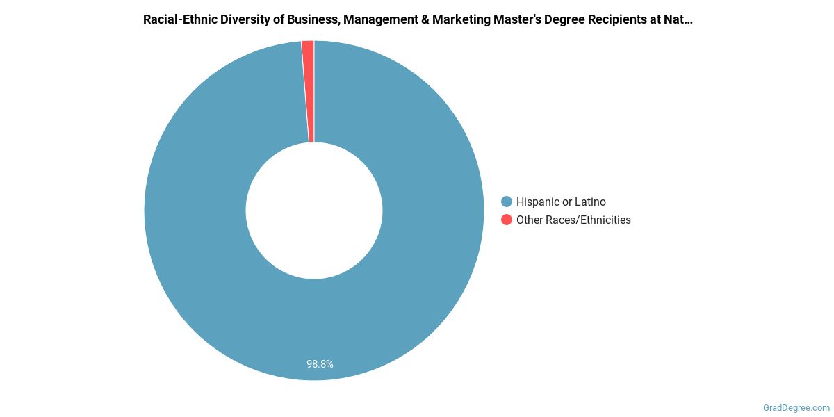 The following table and chart show the race/ethnicity for students who recently graduated from National University College with a master's in business, management and marketing.