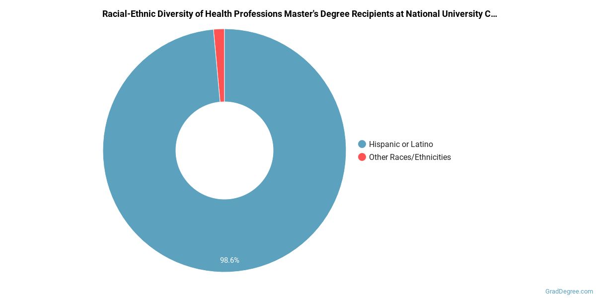 The following table and chart show the race/ethnicity for students who recently graduated from National University College with a master's in health professions.