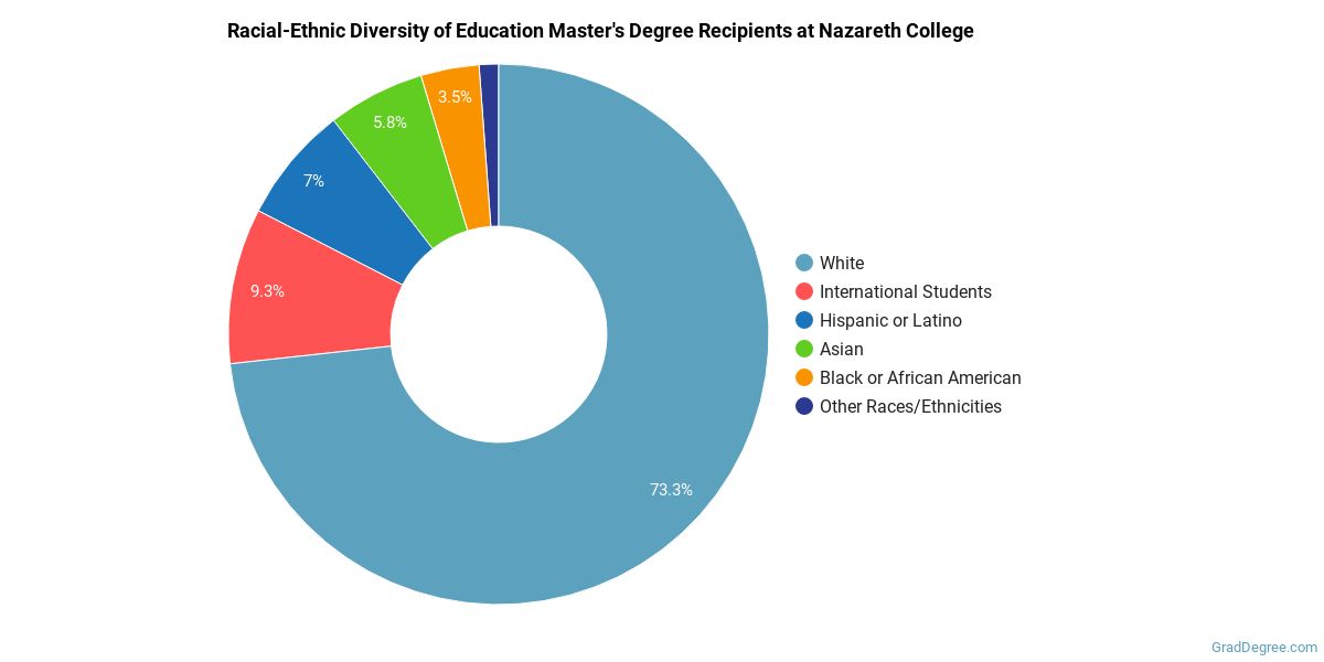 Of the students who received a education master's degree from Nazareth, 73% were white. This is above average for this degree on the natiowide level.