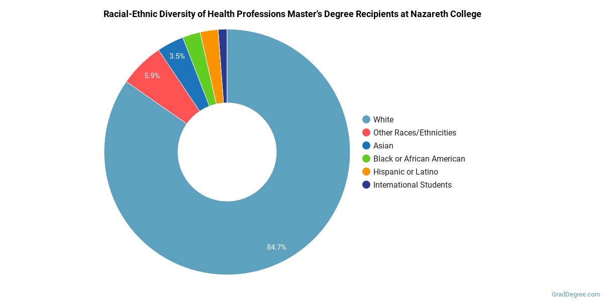 Of the students who received a health professions master's degree from Nazareth, 85% were white. This is above average for this degree on the natiowide level.