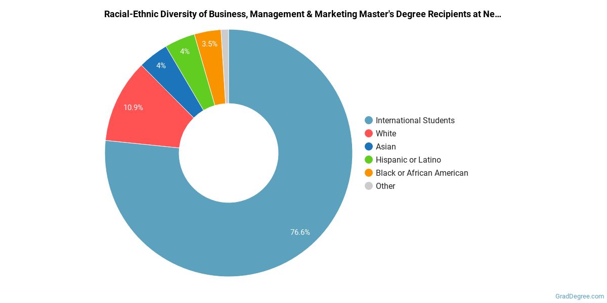 The following table and chart show the race/ethnicity for students who recently graduated from New York Institute of Technology with a master's in business, management and marketing.