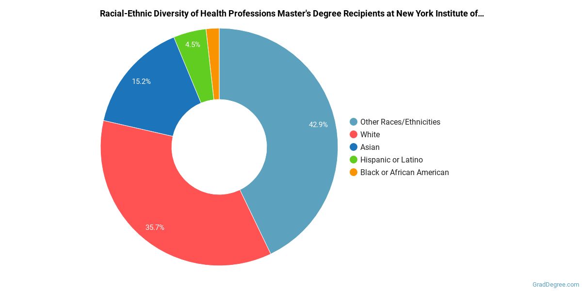 The following table and chart show the race/ethnicity for students who recently graduated from New York Institute of Technology with a master's in health professions.