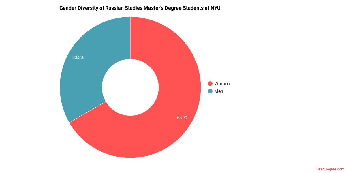 Of the students who received a russian studies master's degree from NYU, 80% were white. This is typical for this degree on the natiowide level. In the russian studies master's program at this school, racial-ethnic minorities make up 20% of degree recipients. That is 7% better than the national average.*