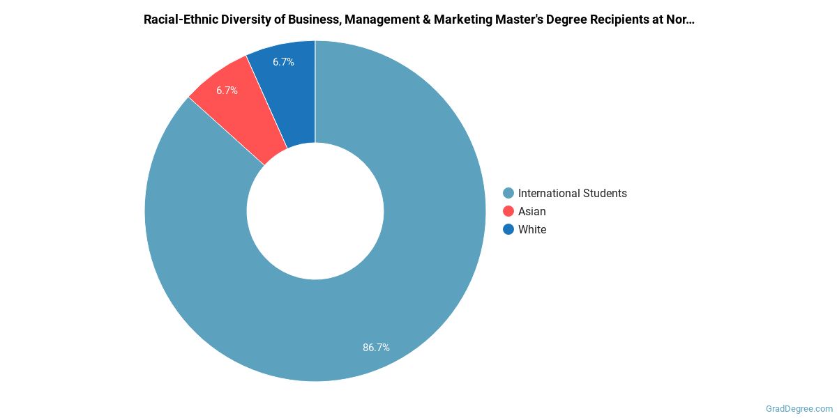 The following table and chart show the race/ethnicity for students who recently graduated from North American University with a master's in business, management and marketing.
