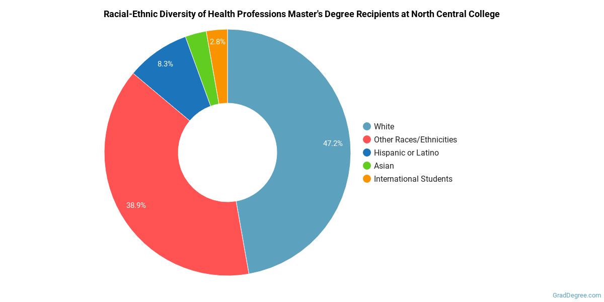 The following table and chart show the race/ethnicity for students who recently graduated from North Central College with a master's in health professions.