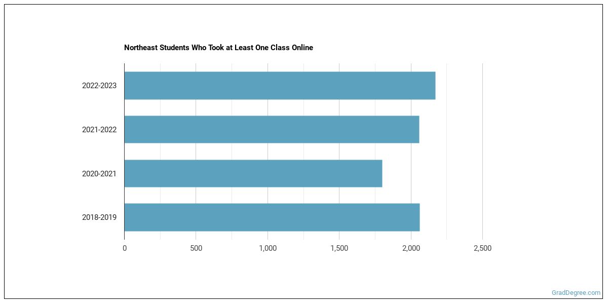 The following chart shows how the online learning population at Northeast has changed over the last few years.