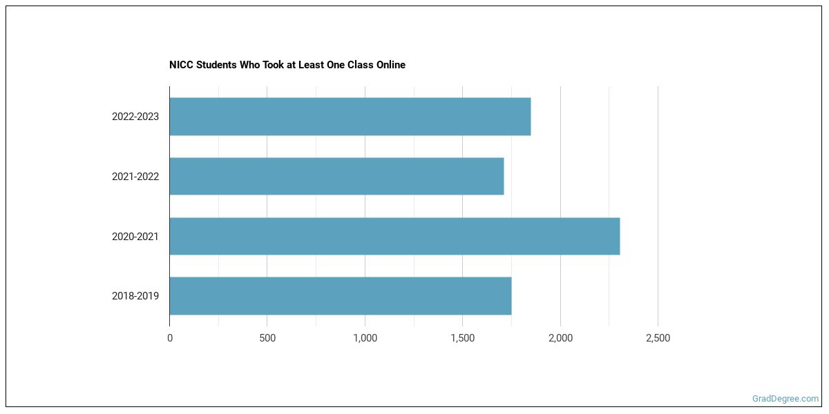 The following chart shows how the online learning population at NICC has changed over the last few years.