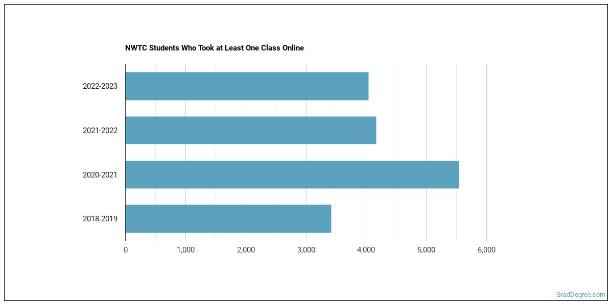 The following chart shows how the online learning population at NWTC has changed over the last few years.