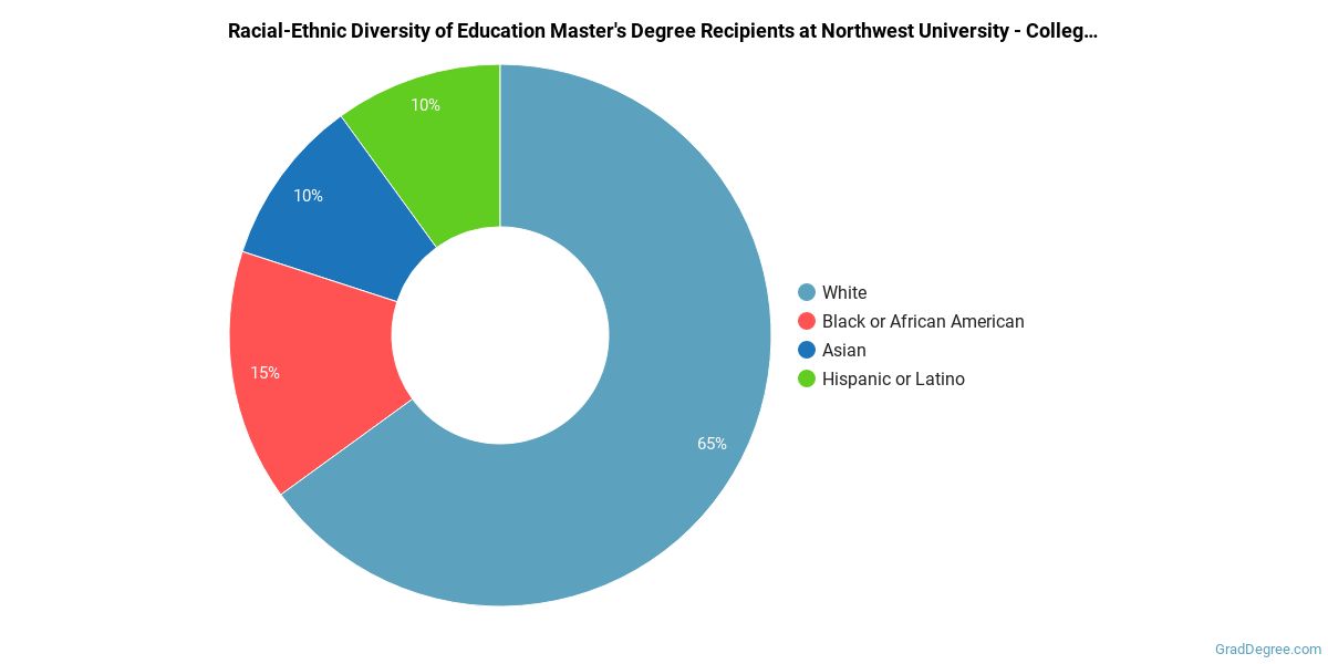Of the students who received a education master's degree from Northwest University CAPS, 65% were white. This is typical for this degree on the natiowide level. In the education master's program at this school, racial-ethnic minorities make up 35% of degree recipients. That is 5% better than the national average.*