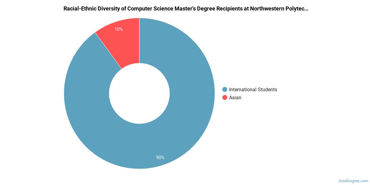 The following table and chart show the race/ethnicity for students who recently graduated from Northwestern Polytechnic University with a master's in compsci.