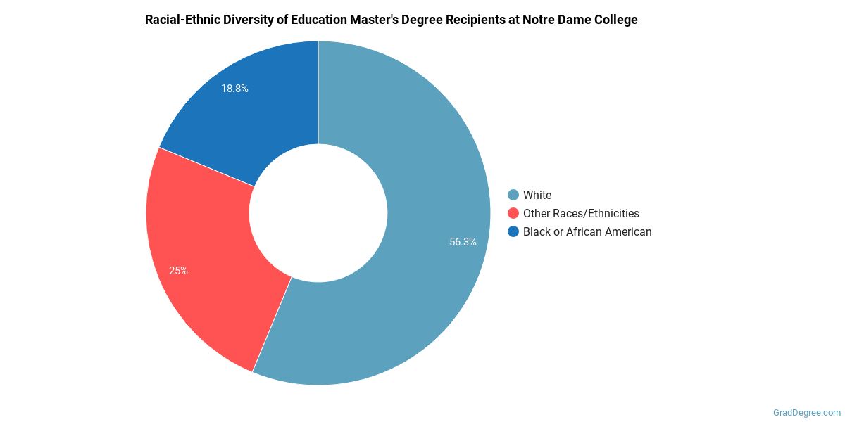 The following table and chart show the race/ethnicity for students who recently graduated from Notre Dame College with a master's in education.