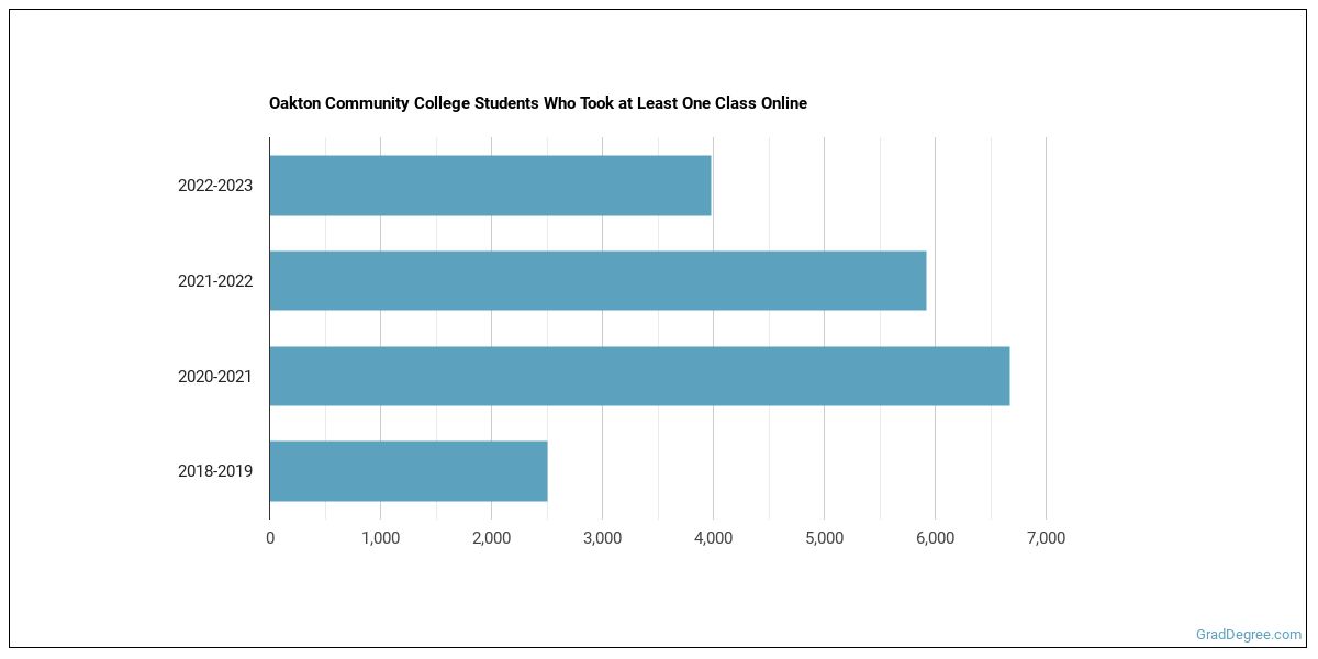 The following chart shows how the online learning population at Oakton Community College has changed over the last few years.