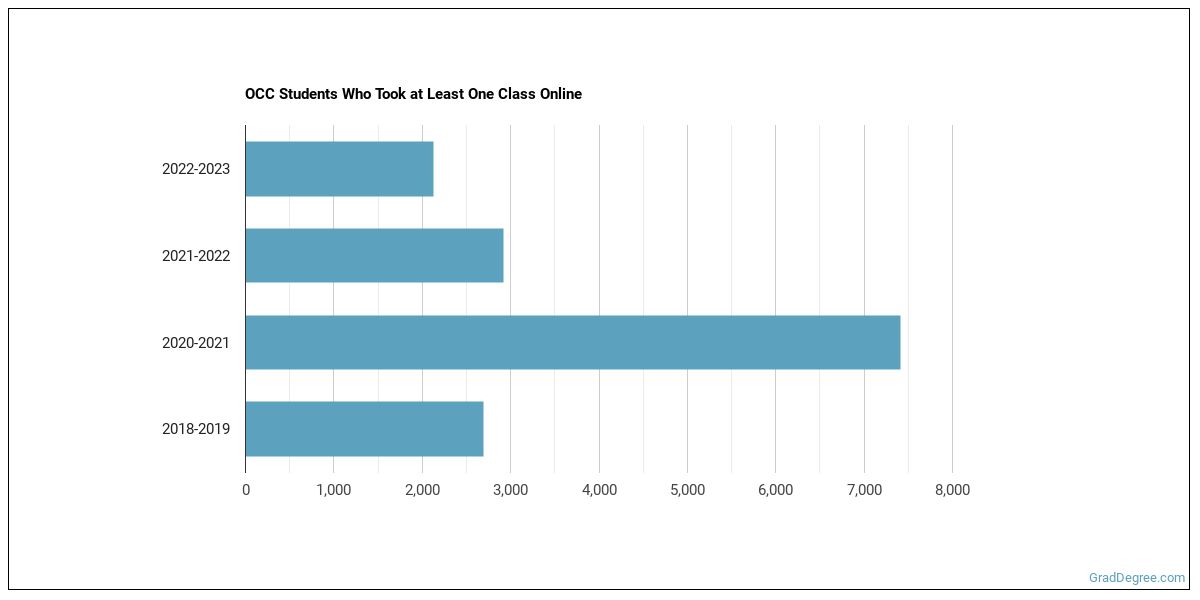 The following chart shows how the online learning population at OCC has changed over the last few years.