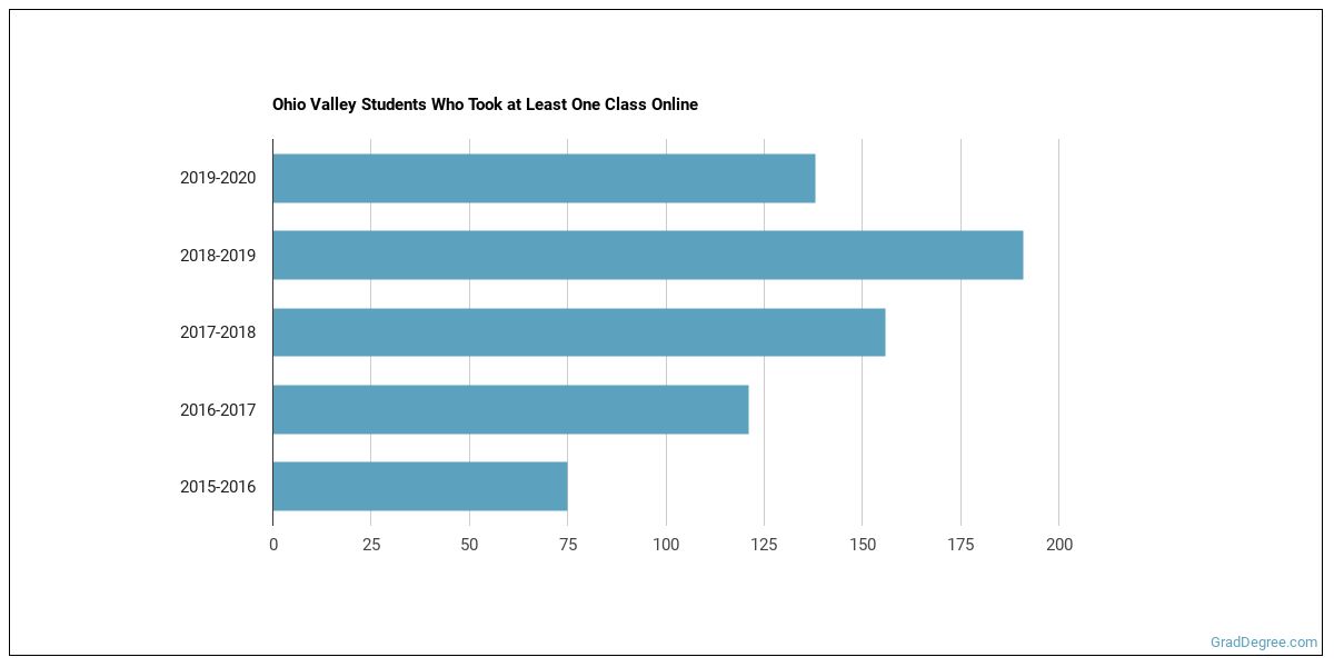 The average growth rate over the last four years of online students at Ohio Valley University was 29.1%. This is the #529 largest growth rate of all schools that are only partially online. This refers to all students at Ohio Valley regardless of major.