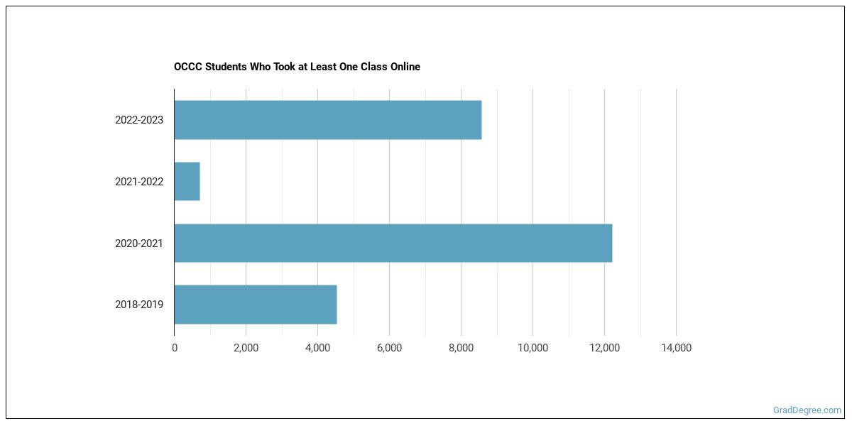 The following chart shows how the online learning population at OCCC has changed over the last few years.