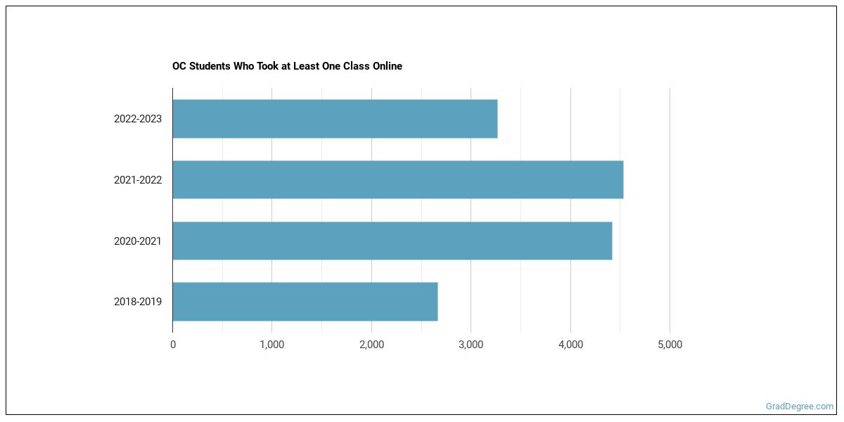 The following chart shows how the online learning population at OC has changed over the last few years.