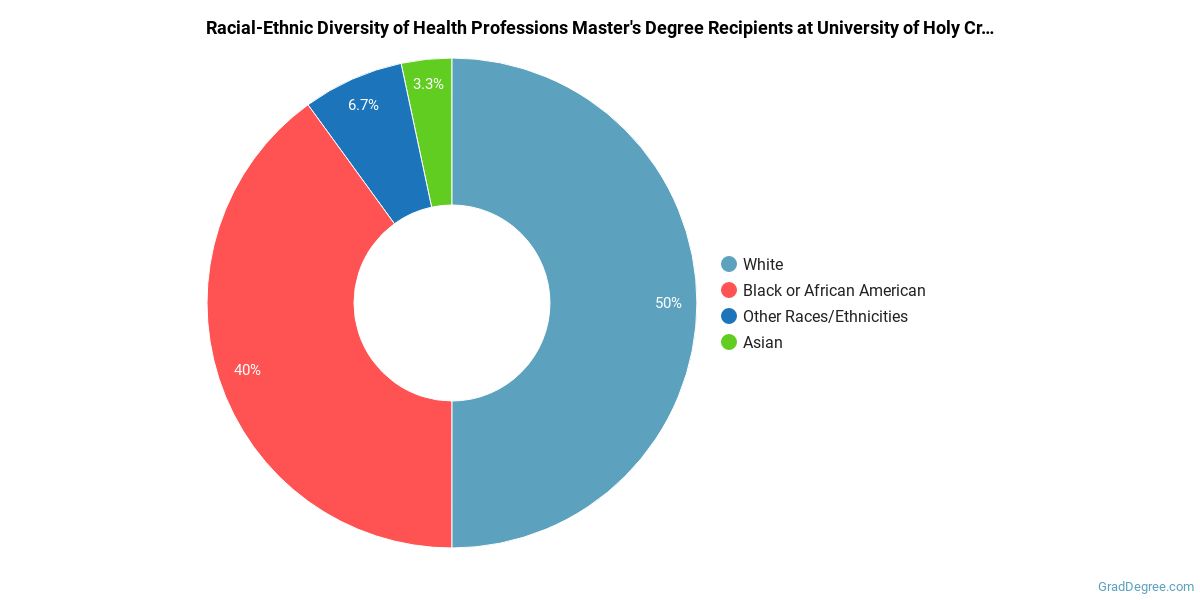The following table and chart show the race/ethnicity for students who recently graduated from University of Holy Cross with a master's in health professions.