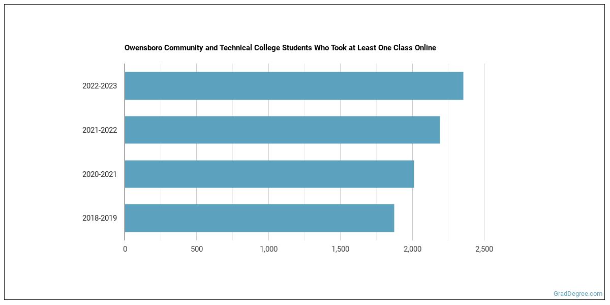 The following chart shows how the online learning population at Owensboro Community and Technical College has changed over the last few years.