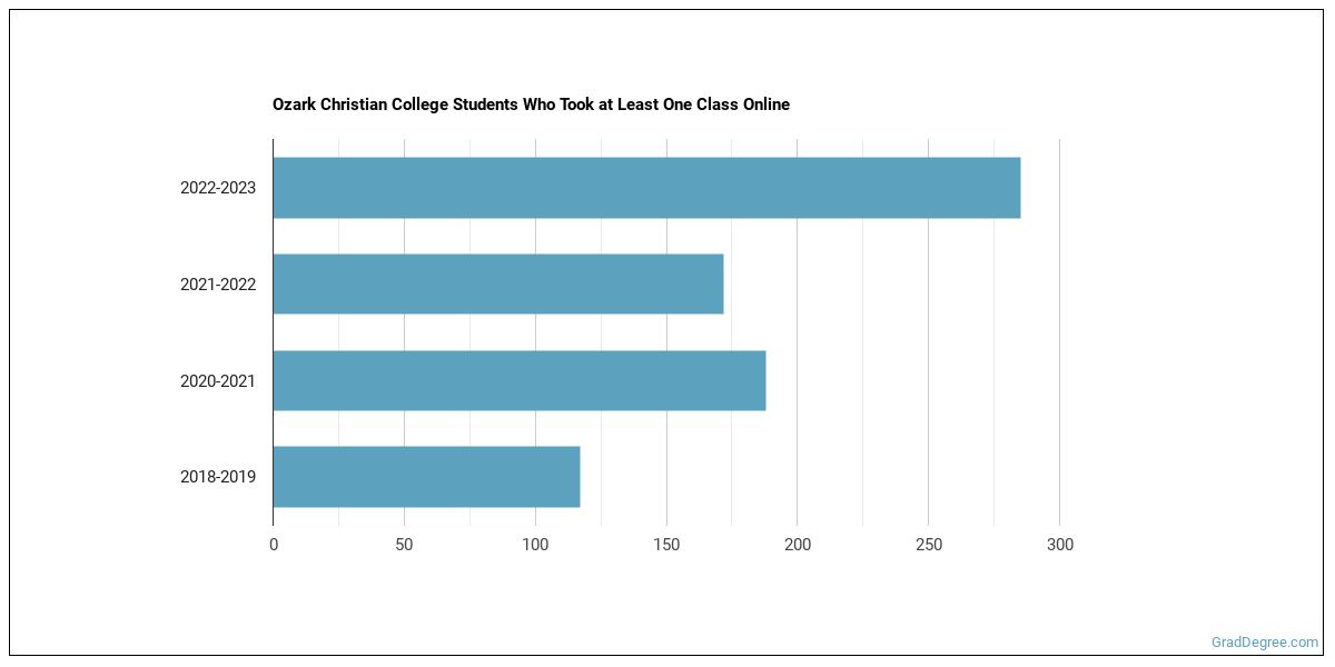 The following chart shows how the online learning population at Ozark Christian College has changed over the last few years.