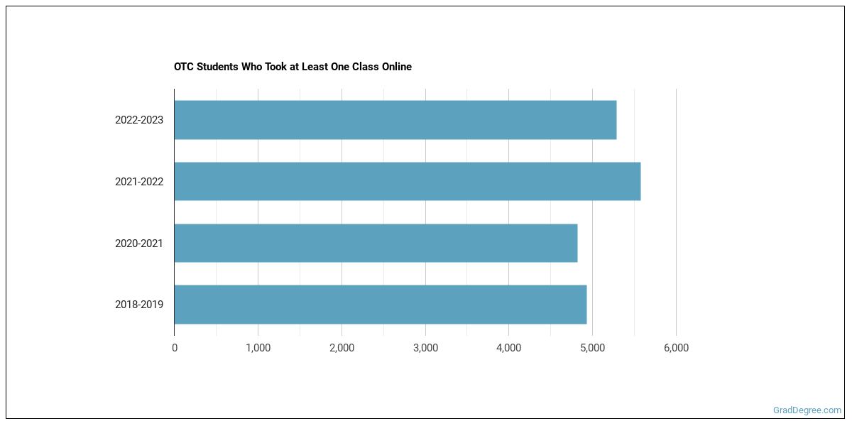 The following chart shows how the online learning population at OTC has changed over the last few years.
