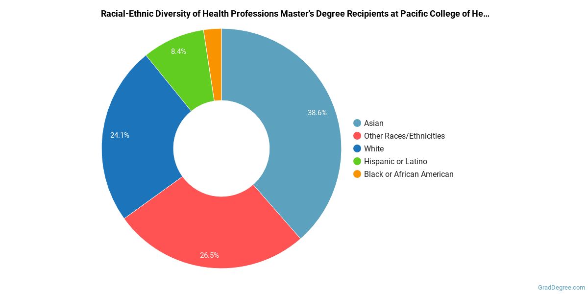 The following table and chart show the race/ethnicity for students who recently graduated from Pacific College of Health and Science with a master's in health professions.