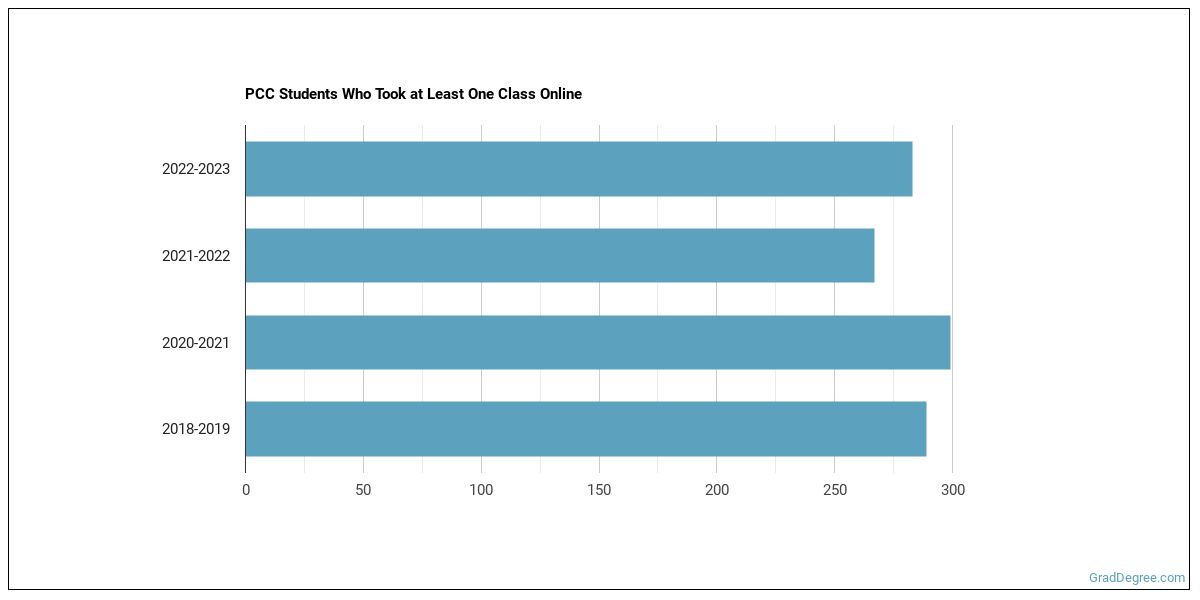 The following chart shows how the online learning population at PCC has changed over the last few years.