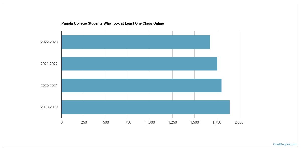The following chart shows how the online learning population at Panola College has changed over the last few years.