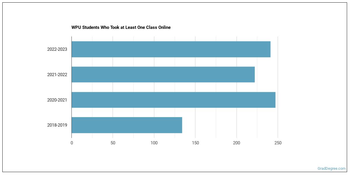 The following chart shows how the online learning population at WPU has changed over the last few years.