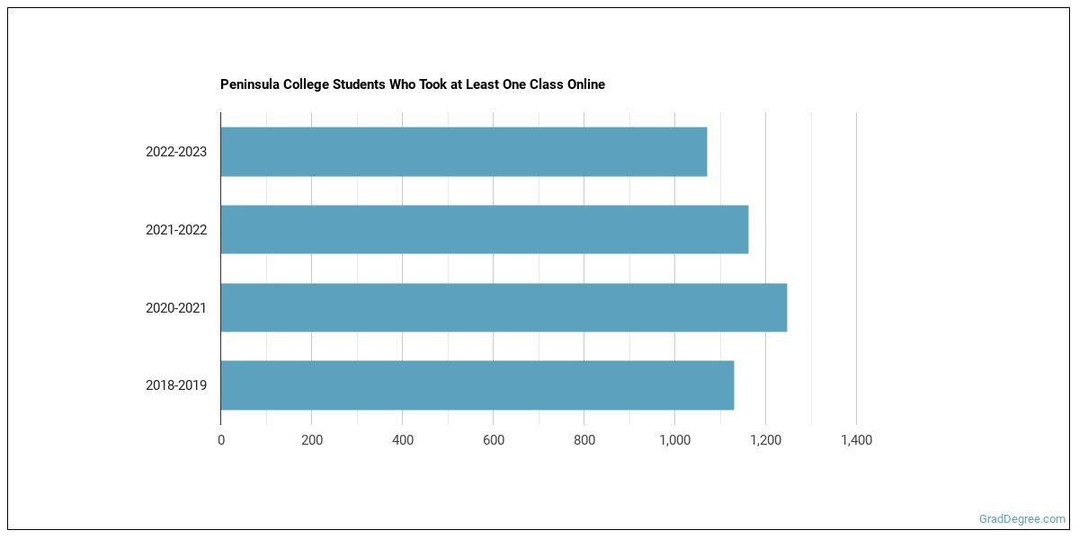 The following chart shows how the online learning population at Peninsula College has changed over the last few years.