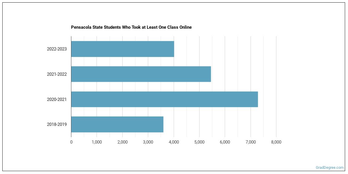 The following chart shows how the online learning population at Pensacola State has changed over the last few years.