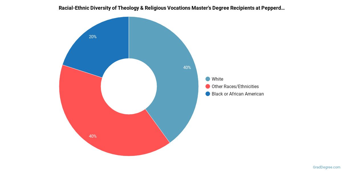 The following table and chart show the race/ethnicity for students who recently graduated from Pepperdine University with a master's in theology and religious vocations.