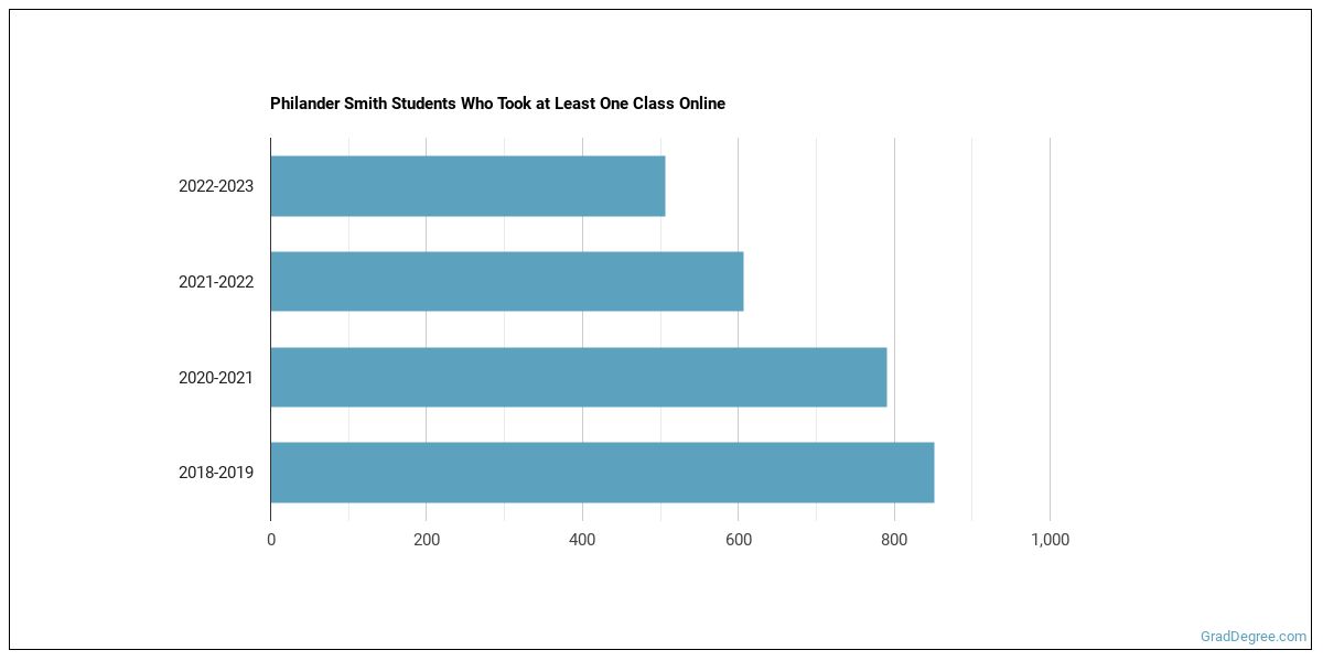 The following chart shows how the online learning population at Philander Smith has changed over the last few years.
